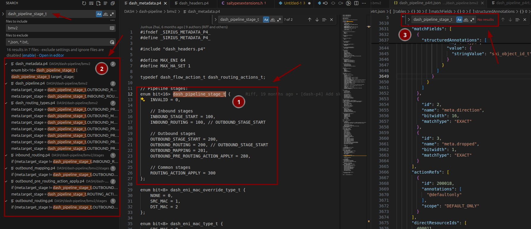 serializable_enumsdefined indash_headers.p4anddash_metadata.p4are emitted into the generateddash_pipeline_p4rt.json/.txtfiles.
